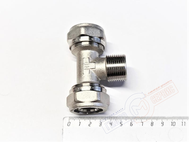 Обжимной тройник с наружной резьбой для металлопластиковой трубы НР 26x3\4"х26 (ник.) PROFIT GH, вес: 295гр
