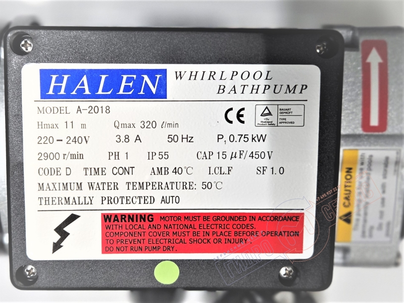 Электро помпа HELEN 230В гидромассажа для ванны Appollo SU-1515-A с блокировкой сухого хода